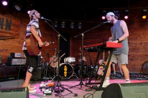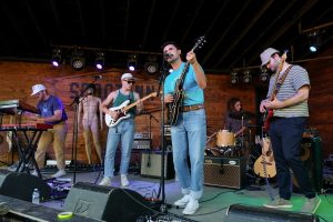 Slenderbodies captivated concertgoers at Scoot Inn as the sun set in Austin, TX on June 6th. Slenderbodies had the crowd grooving throughout their set as they played well-known tracks such as “Underwater” and a few new songs off their album releasing this week. Nashville-based artist Mokita joined Slenderbodies back on stage after his set with an acoustic guitar for “Speeding Up.”