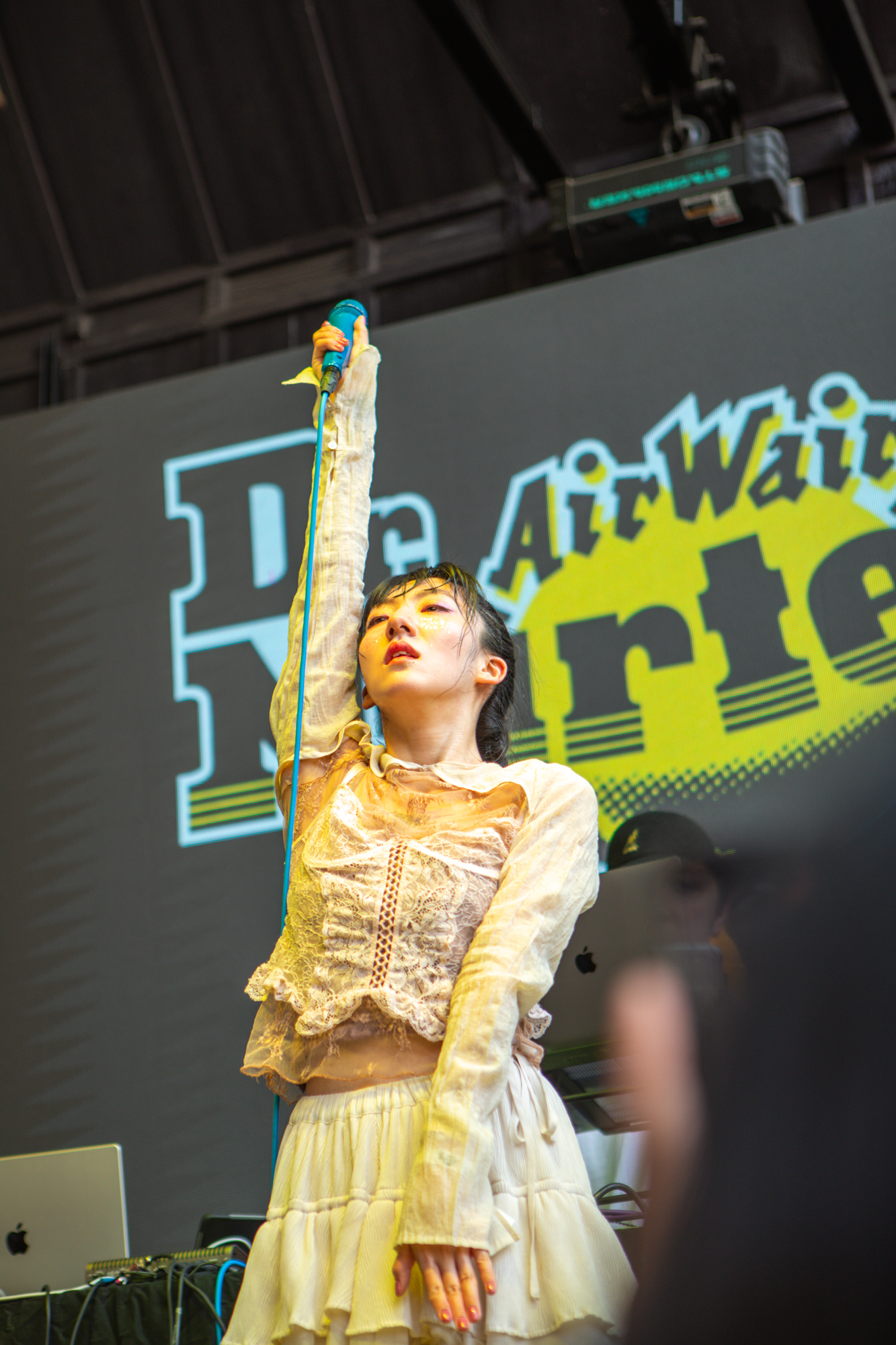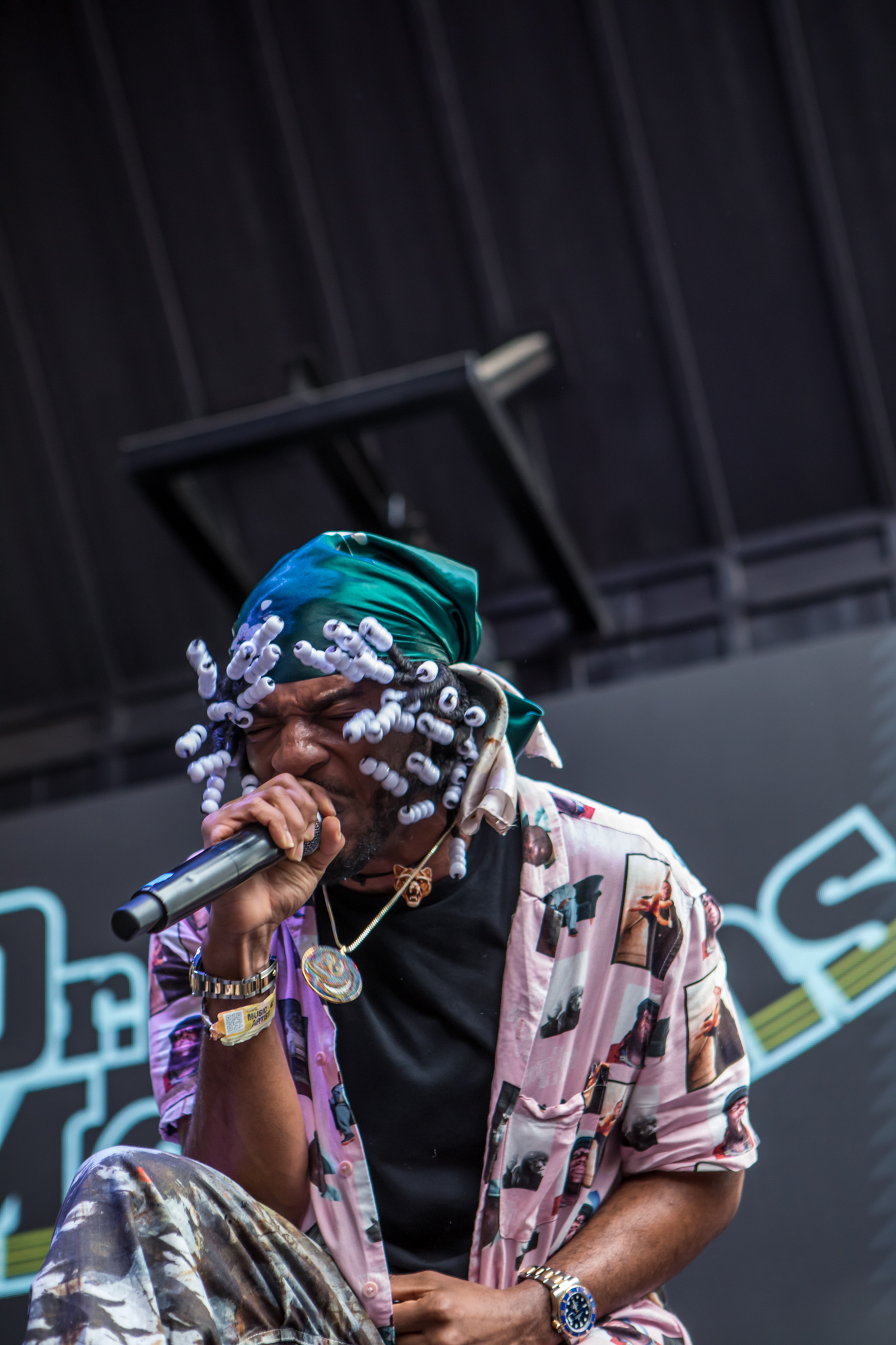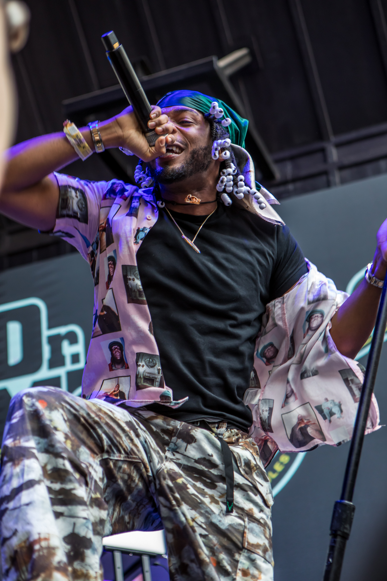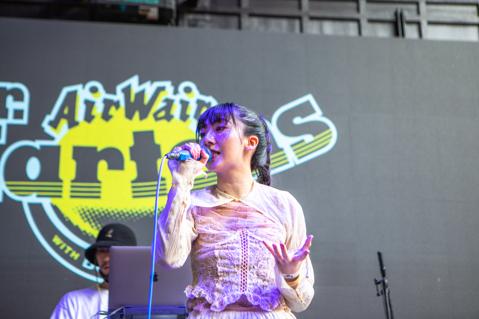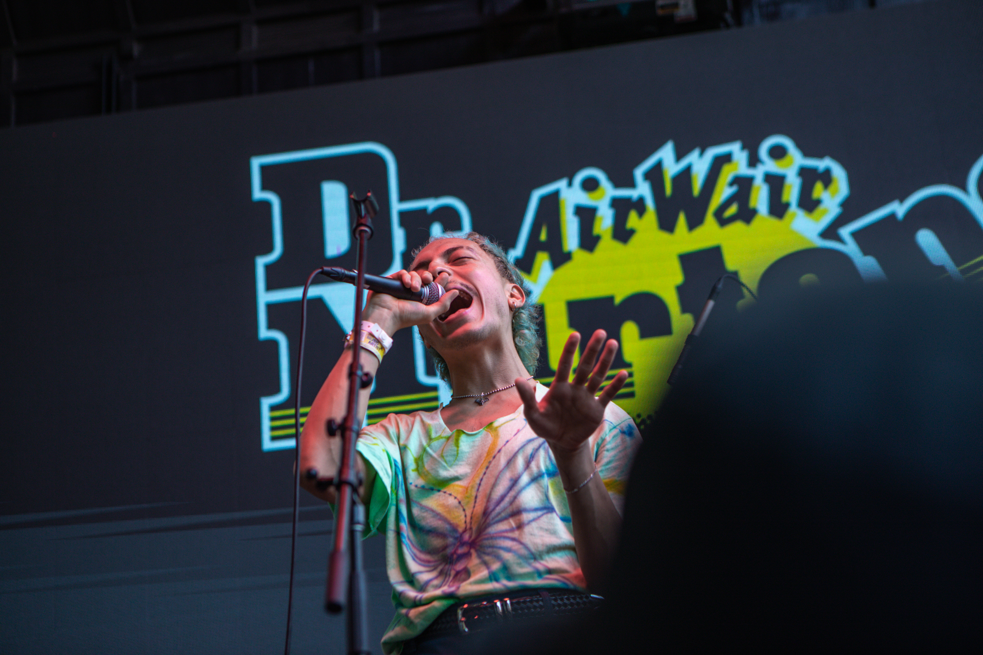 Our team arrived at the function in time to catch the last two songs from Lime Garden’s performance. The vibes were set to a bilingual set by the band Divino Niño from Chicago. Their set included songs from their newly released album, Last Spa on Earth including “Nos Soltamos” and “XO”. Japanese artist HARU NEMURI followed on stage where the scene quickly became a party as she invited three other artists to join her performance. Soon after, John the DJ continued to pump up the vibes as the crowd was endowed as a “family” and taught some dance moves while introducing Armani White. A fan traded his Biggie imprinted button-down for Armani’s pullover hoodie, while a saxophone player joined the stage to compliment the jams. – Emily Martinez and Keylee Paz