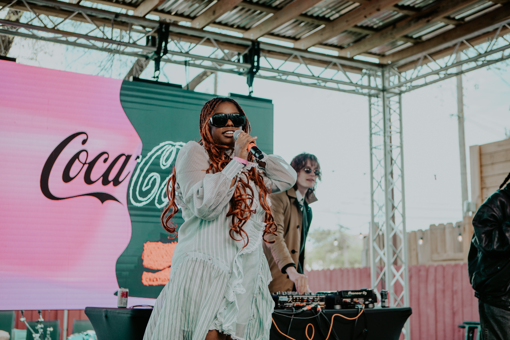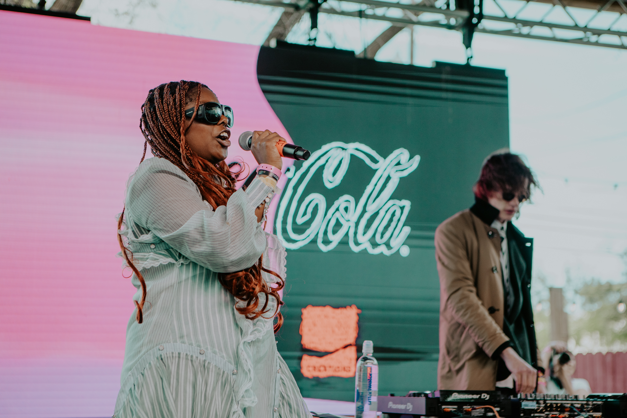 The Coke Move showcase was one of the most vibrant parties on Rainey street – bubbles were blowing all over the venue, different reps were handing out free goodies and drinks, what more can you ask for? As soon as Hannah Jadagu ended her set, Curtis Waters took the stage and encouraged all attendees to get up and jump, despite the really cold weather. Coco & Clair Clair took the stage soon after, and the venue was so packed that people were trying to sneak a peak from the fence next door. Although the duo finished their set in just 20 minutes, they stuck around and met their fans after the show before they headed to ACL Live. Latin/Canadian artist Isabella Lovestory was definitely a highlight – she brought her catchy spanish tunes to Lustre Pearl and everyone was dancing (or should I say… perreando) to her songs like “Alo” and “Latina.” – Keylee Paz