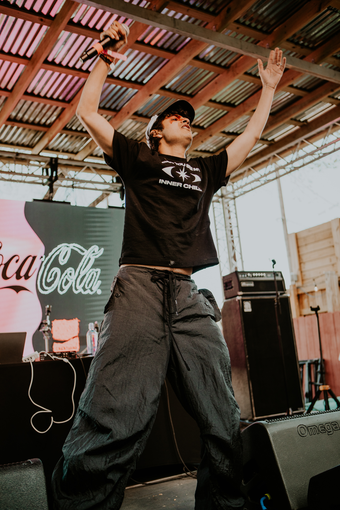 Soundbites from the movie Mean Girls introduced the Scottish band CherryM at the Sellers Underground stage. The powerful and fun band wasted no time getting friendly with the crowd and treating attendees to a track of their upcoming 2024 album. Loose Articles followed the stage rocking songs “Kick Like A Girl” and “Up the Disco.” The band kicked up the energy and Bassist/Vocalist, Natalie, closed the set by stirring up a mini-mosh and joining in on the action. Local Austin band Cheekface brought a colorful tone to the night and went big with a thirteen song setlist. Fan favorites included “We Need a Bigger Dumpster,” “Best Life” and “Pledge Drive” which the crowd sang and danced through. – Emily Martinez