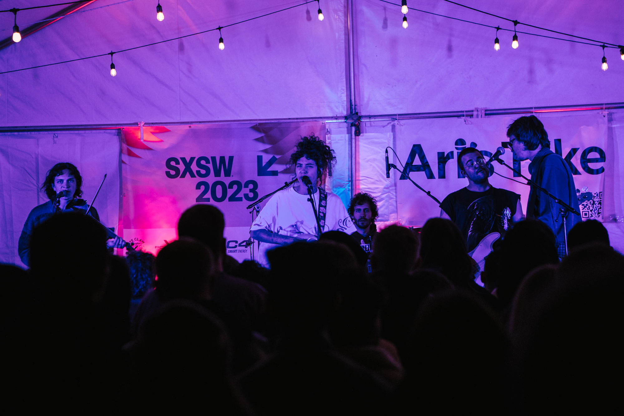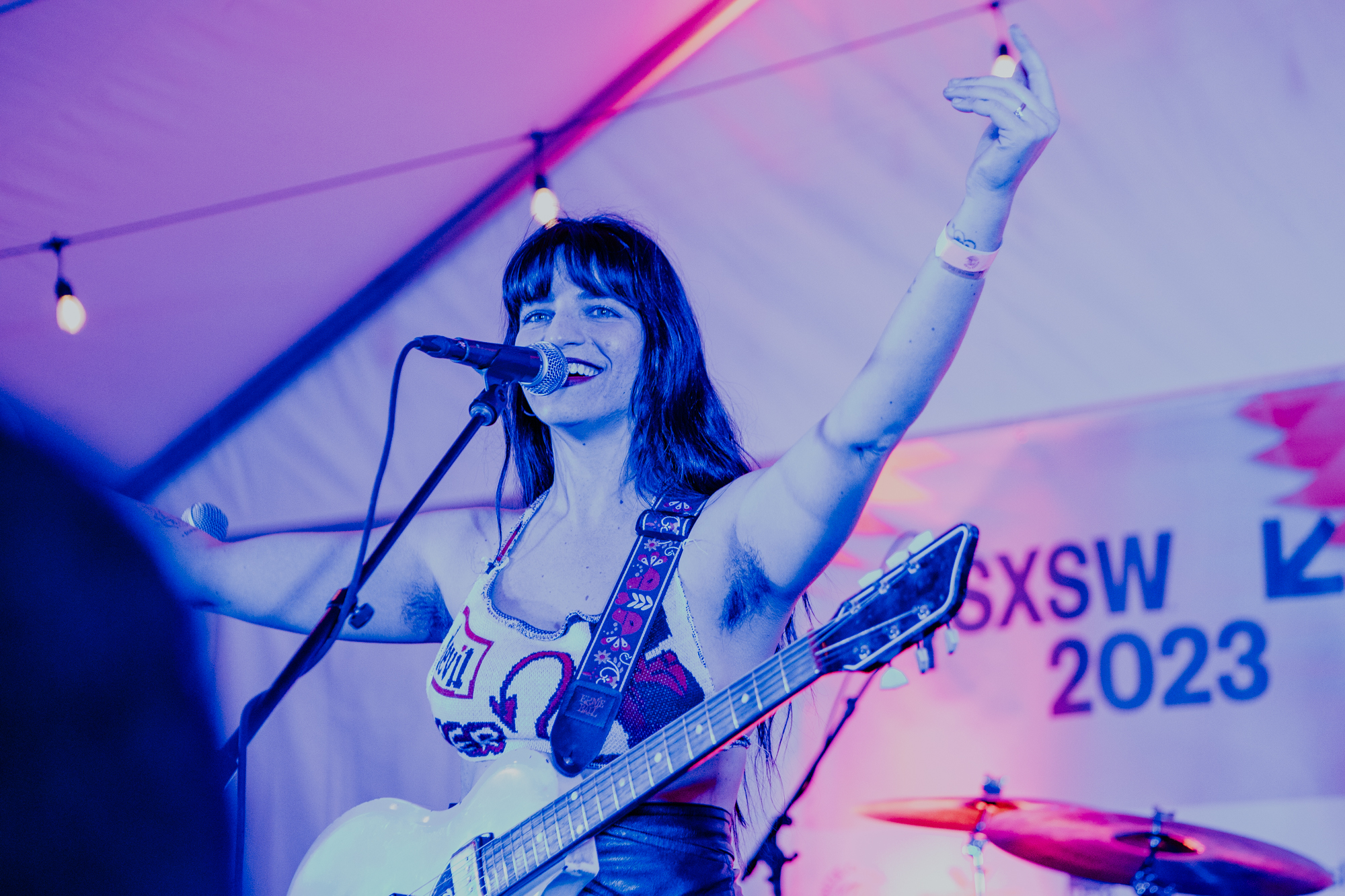Ari’s Take x Labelcoin was the most poppin’ spot on Rainey that Friday night, especially since everyone was celebrating St. Patrick’s day. The music lineup was solid, and CEO of Ari’s Take (Ari Herstand) introduced all of the acts performing. The Rare Occasions performed their only set during SXSW, and played their songs like “Origami” and “Call Me When You Get There.” Next up was Annabel Lee, who recently released her debut album called Mother’s Hammer. Indigo de Souza, the most anticipated act of the entire festival, got on stage with her band and played multiple fan-favorite songs like “Sick in the Head” and “Not My Body.” – Keylee Paz