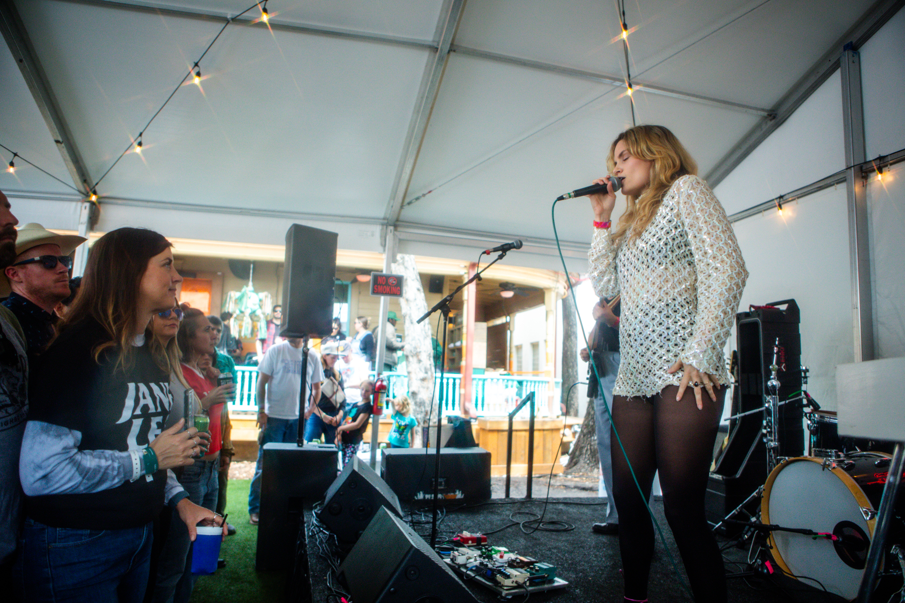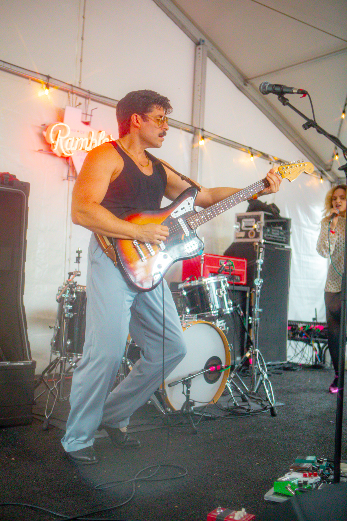 Rambler presented a double showcase, on one side, the alternative rock duo, Jane Leo, revealed the performance to be their sole SXSW appearance. Despite the early afternoon hour, they encouraged the crowd to embrace the energy of midnight hours and shed their inhibitions. Guitarist Daniel Leopold demonstrated the swagger of a seasoned rockstar pairing his precise playing with engaging moves. They performed “The More You Know”, “Wow” and recently released “ Vicious One”. Vocalist Jane’s charming voice, accompanied by a subtle whisper that commanded attention, was brought to life by her rhythmic movements. To everyone’s delight, she descended from the stage and joined the crowd as they danced.