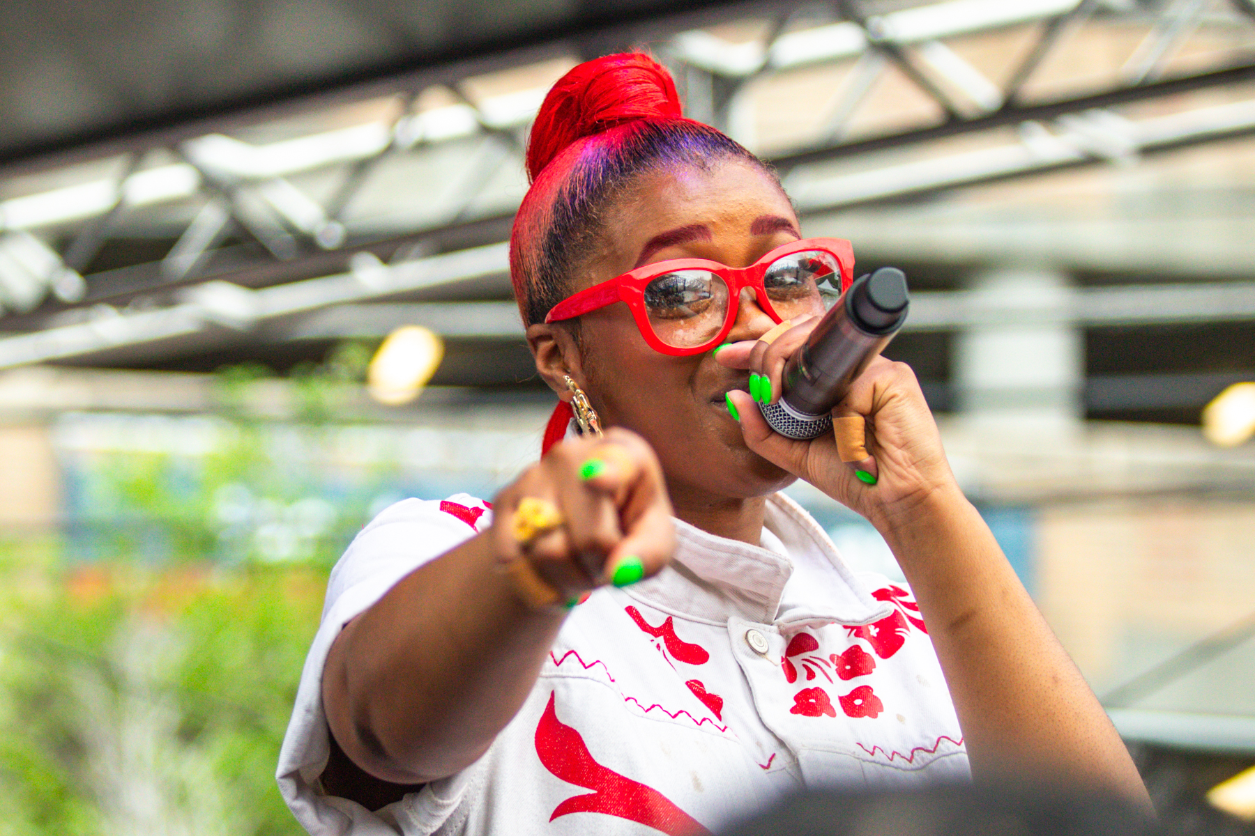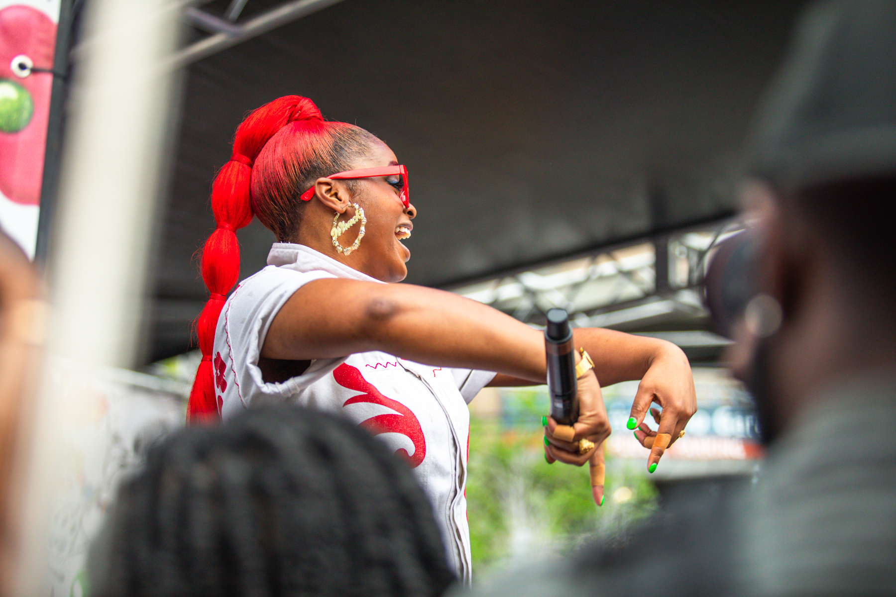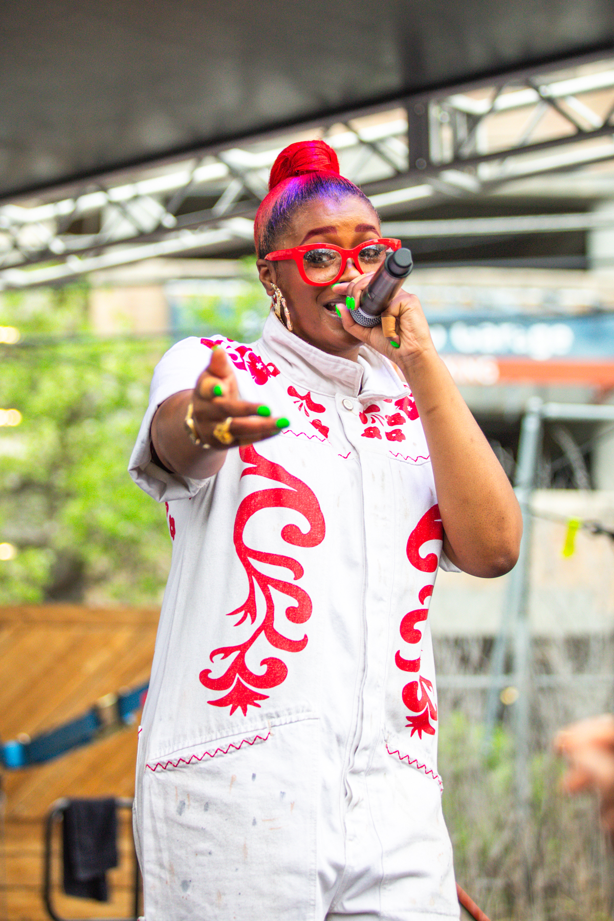 Tierra Whack’s DJ warmed up the crowd with classic hip-hop tunes, and Whack herself emerged in a stylish red and white jumpsuit, paired with red sunglasses. She pledged to elevate the crowd’s energy and ensure a phenomenal show. Whack was surprised the audience did not erupt in energy as she performed tracks off her new project (which had been released just the day before). After accepting that her fans did not have enough time to memorize the fresh tracks to heart, she transitioned to more familiar songs from her previous projects. The momentum quickly picked up and the presence of “OG fans” in the crowd was evident. Women from the audience enhanced the atmosphere by dancing on speakers and on stage during the performance of “CLONES”. The energy reached its peak while fans united in synchronized jumps during “Only Child” and her very well-kept secret song where she eloquently raps at a fast pace. Whack’s fervent chant of “World Wide Whack” served as a mantra that amplified the promotion of her new project. The performance concluded with a resounding bang, leaving the audience brimming with leftover energy to carry with them for the rest of the evening. – Emily Martinez